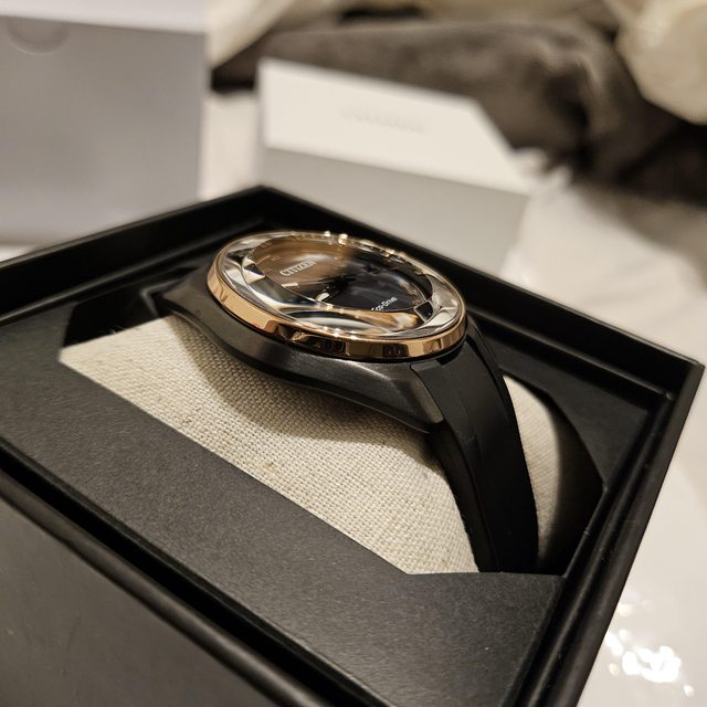黑色錶殼及金色錶圈為超級鈦材質,是一隻很美又能一定程度取代智慧手錶的指針錶。