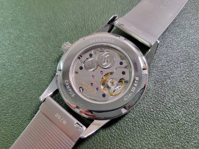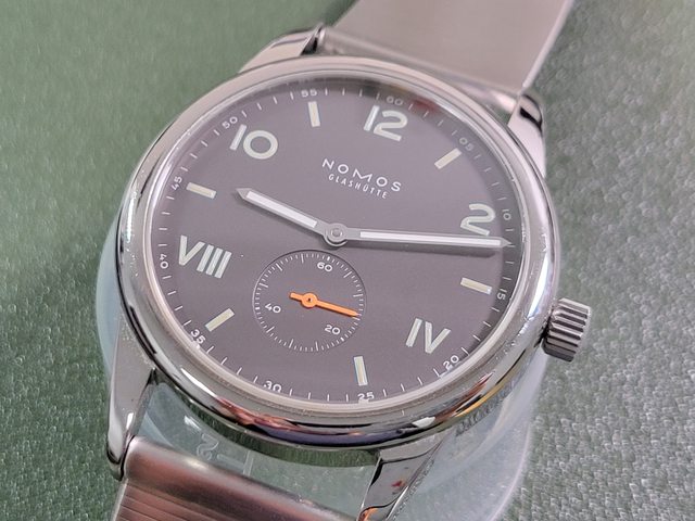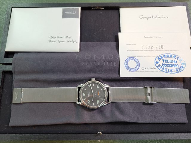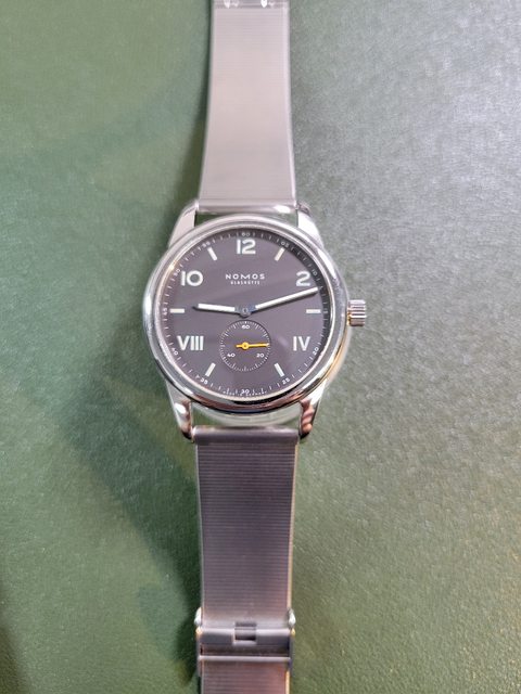 2. (售出)Nomos club campus 38 night,背透鋼帶版。面盤為黑色帶有一點棕色調,