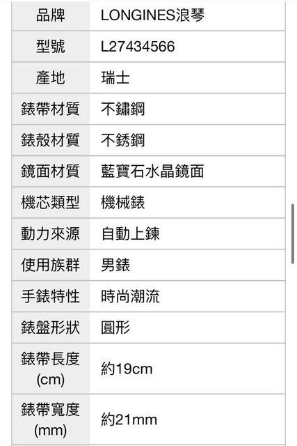 腕錶型號:L27434566