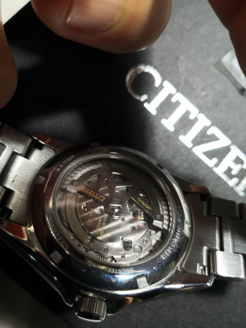 Citizen 大三針 文錶 黑面 細微太陽紋面盤 24小時指示 日曆指示,時標指針夜光功能,