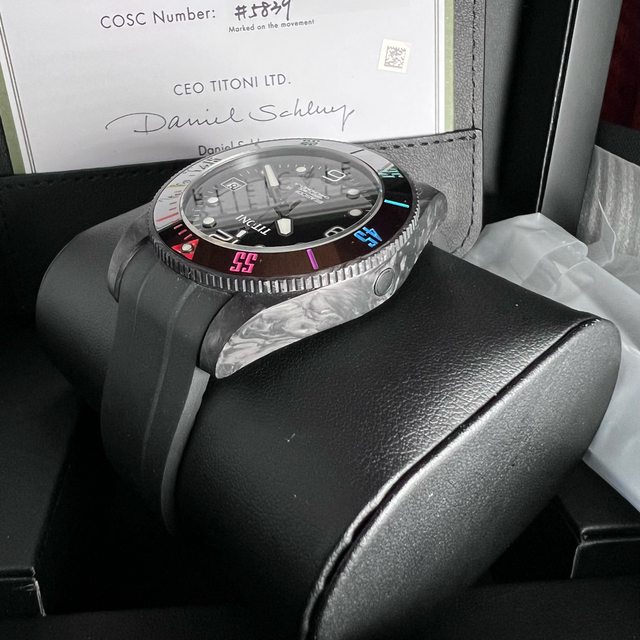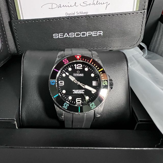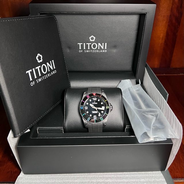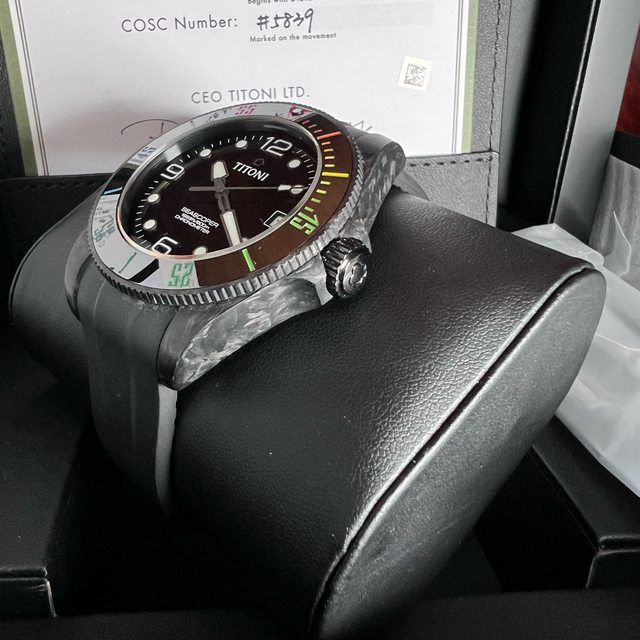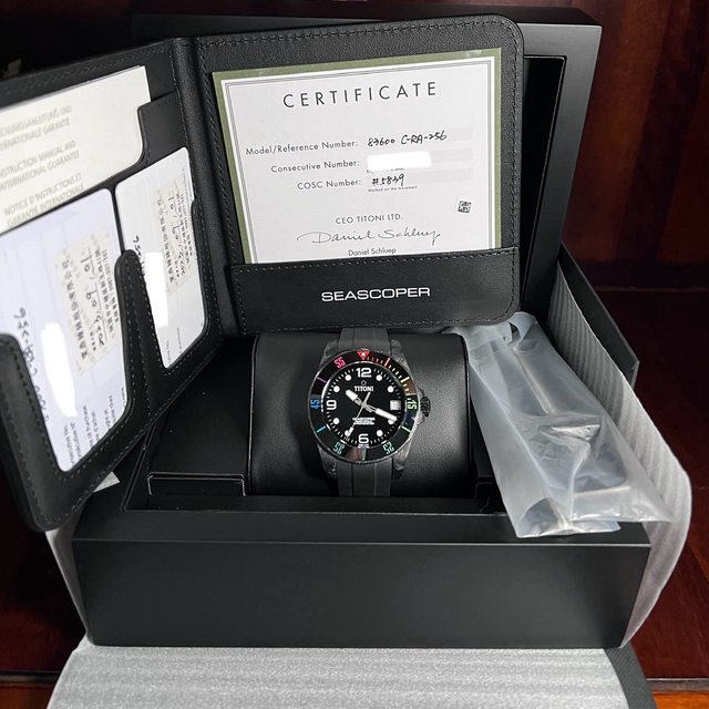 品牌名稱:TITONI SEASCOPER 600鍛造碳彩紅圈