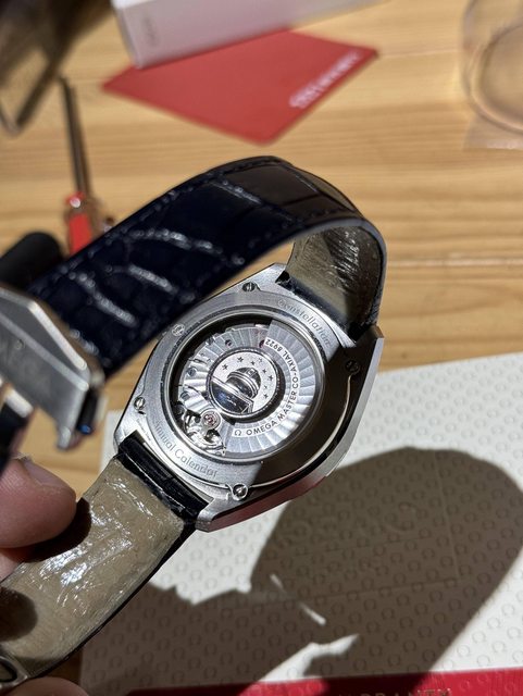 此腕錶搭配藍色皮錶帶,搭載歐米茄8922大師同軸擒縱天文台年曆機芯,並具備革命性的