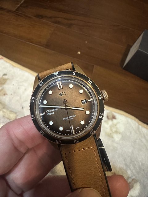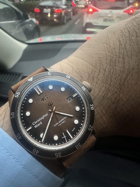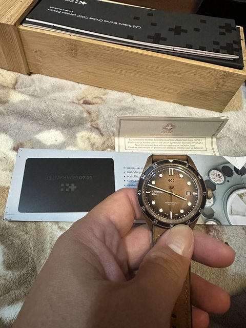 附註:已停產,市面少見的復古潛水青銅錶。比一般潛水錶薄,搭配起來能文能武。棕色漸