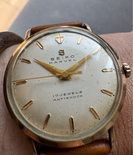 1.老精工大S蛇標Seiko marvel,約1960年代生產,手上鍊機芯,稀有特殊直條紋面盤,
