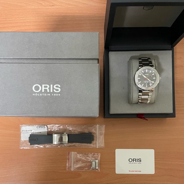 名稱:ORIS AQUIS RELIEF 灰面 含鋼帶及膠帶