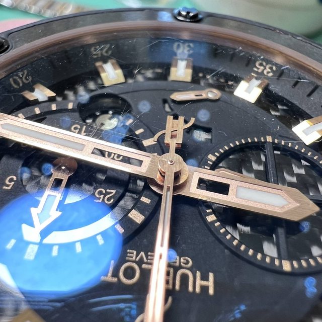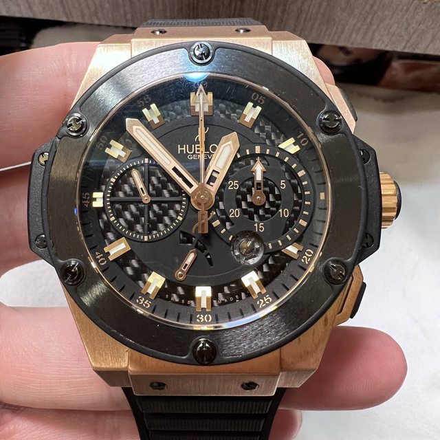 功能:自動上鍊、計時碼錶、雙追針計時、動力儲存顯示。碳纖維面板、限量(367/500)