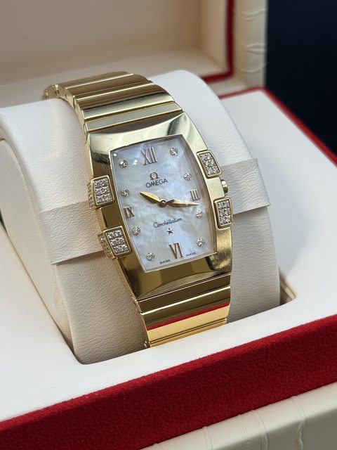 備註:石英錶,錶殼錶帶 整隻黃k金,貝母面盤,付緞帶錶盒