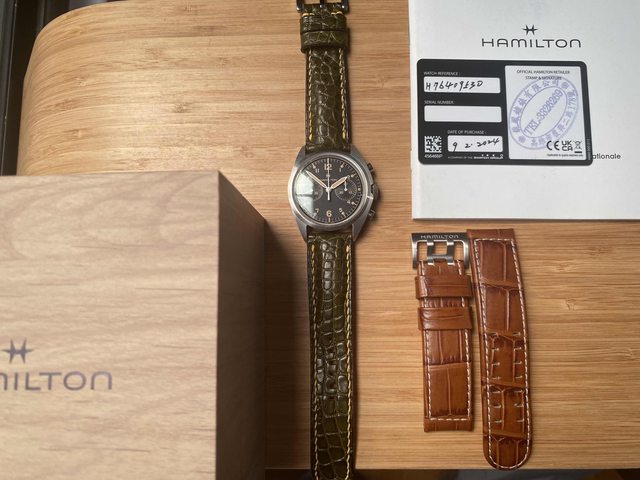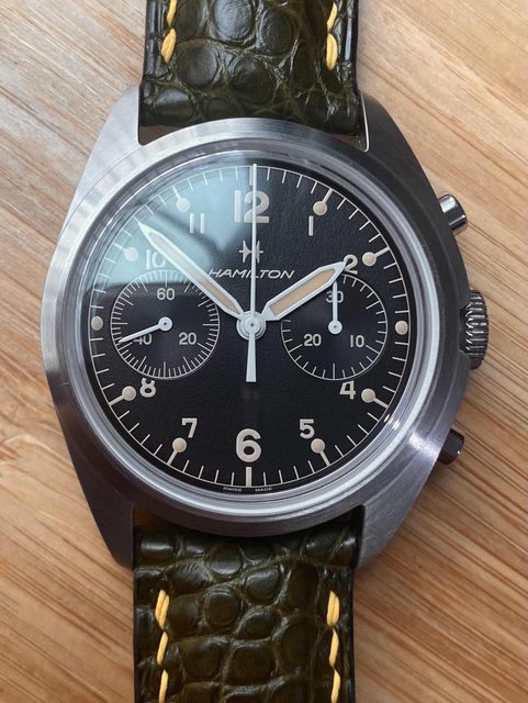 商品:Hamilton漢米爾頓手上鍊計時皮帶飛行機械錶