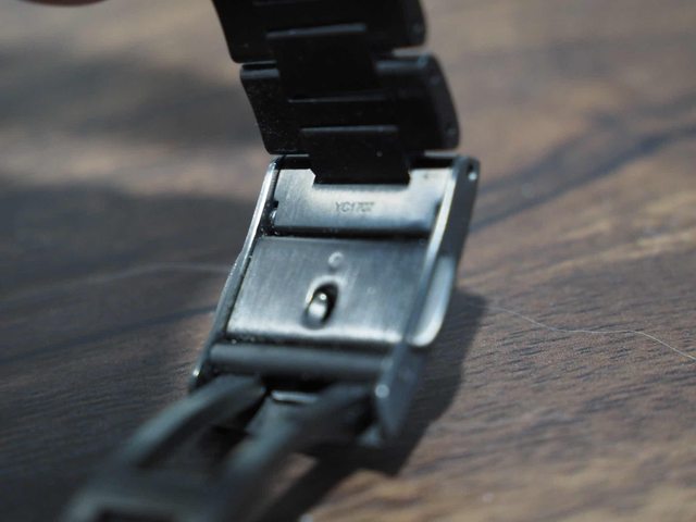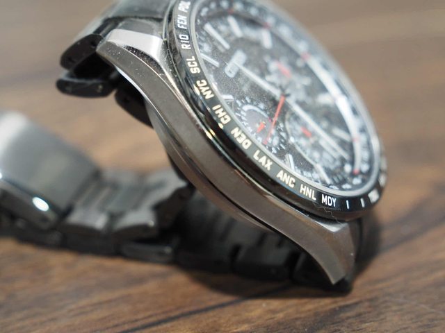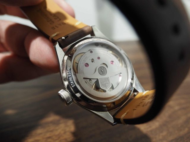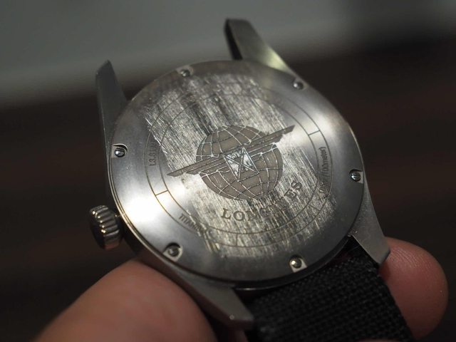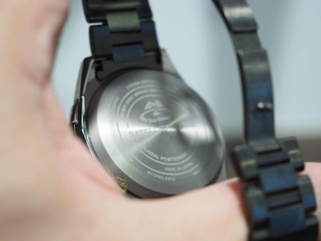 此表粗戴使用,所以錶背有與金屬錶帶摩擦的痕跡,此外因為藍寶石風防是雙面(內外)