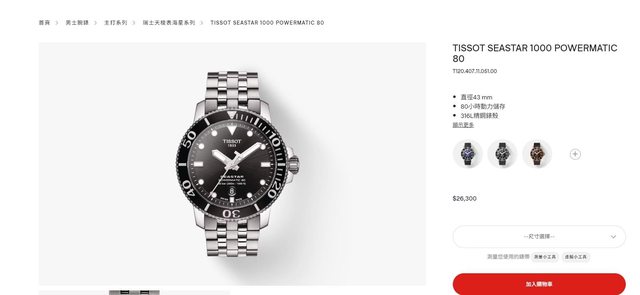 天梭海星1000使用的是P80機芯, P80機心芯有好幾種型號,現在只有部份入門款機械錶使