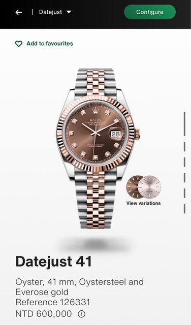 手錶型號:126331巧克力五銖帶鑽面