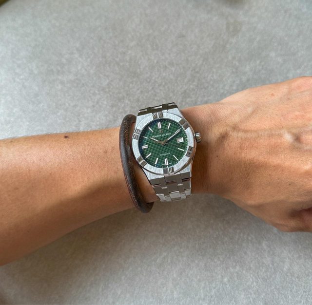 1. 艾美經典Aikon系列39mm綠面,漂亮巴黎釘紋面盤很有層次感,39mm的尺寸上手不管是