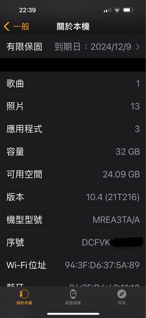 手錶型號:Apple watch SE2 44mm 午夜黑