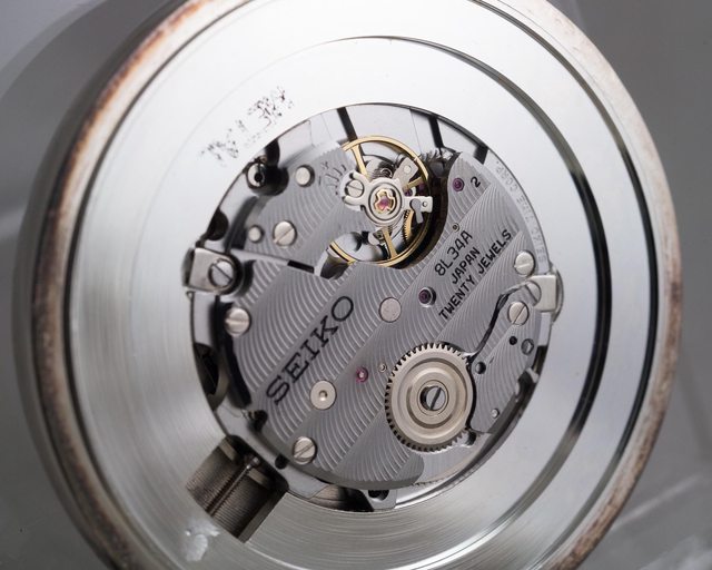 機芯是罕見的8L34手上鍊機芯,振頻28800vph,動力50小時