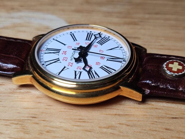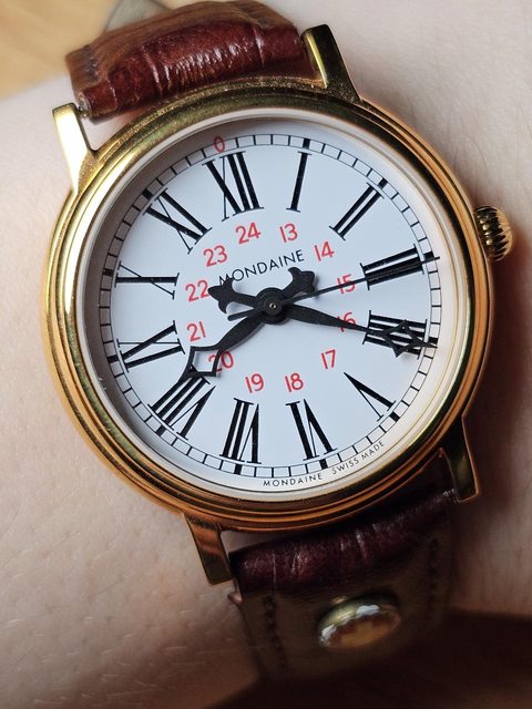 手錶型號:Mondaine 無曆錶 欲售價格:4500 隨附物件:原廠皮帶、附上一個通用錶盒 交易方式:樹林、新莊、桃園龜山面交,北部地區可協調面交,寄送店到店免運 物件描述: 二手品約7成新,此為有曆機芯但面盤不做日曆的錶款,不用調整日期。附上一些照片參 考