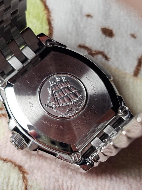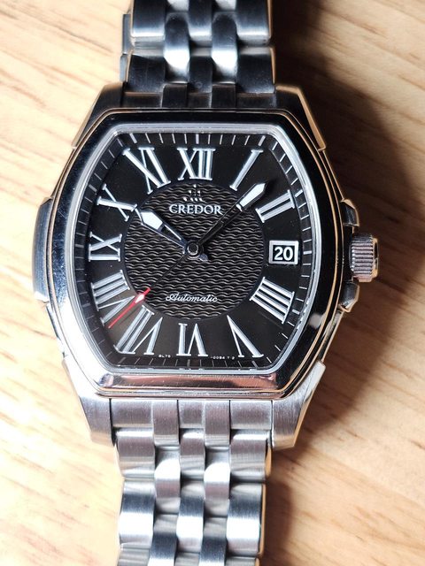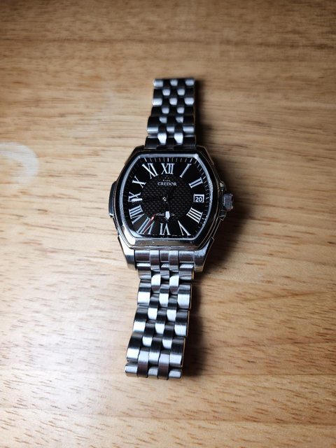 手錶型號:貴朵 Credor GCBR987 pacifique 欲售價格:38000 隨附物件:原廠盒,原廠鏈帶 交易方式:樹林、新莊、桃園龜山面交,北部地區可協調面交,寄送店到店免運 物件描述: 二手收藏品,Pacificique在貴朵是個強調運動的錶款。 酒桶形錶殼搭配時尚的黑色羅馬錶盤,錶盤中央飾有像徵海洋的波浪圖案,後蓋刻有象徵 太平洋冒險精神的帆船。名副其實的「太平洋」。 光線之下中間呈現立體的波浪錶盤,外圈則是細細的同心圓,錶帶原配置皮帶,前錶主已 經換成原廠鏈帶了,是個相當舒適的鏈帶。 錶殼尺寸 38.5mm x 36.5mm,厚度13mm,防水也有100m。功能正常,目前秒差約+5s/d(還 是會因彼此的配戴以及活動方式有差)。 8L75機芯 附上幾張照片參考