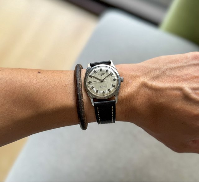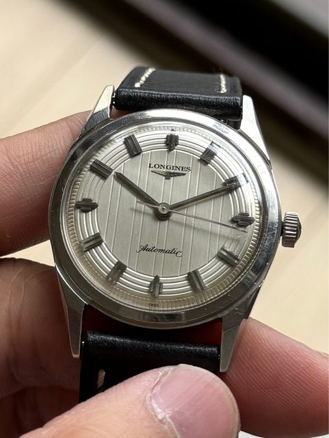 2.1960年代生產老浪琴,搭載Cal.340偏心軌道自動手動上鏈機芯,立體時標,面盤蝕刻