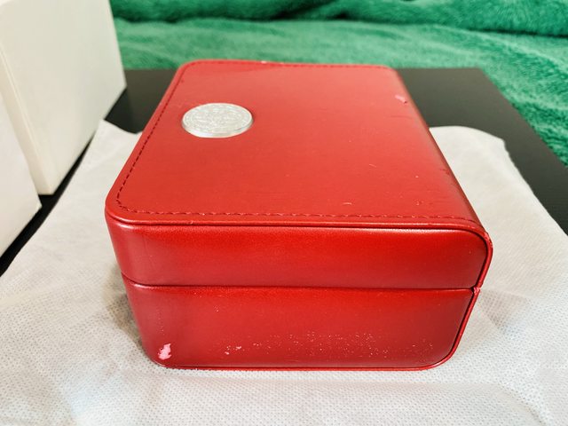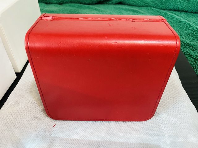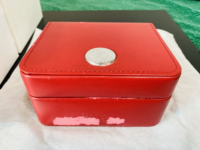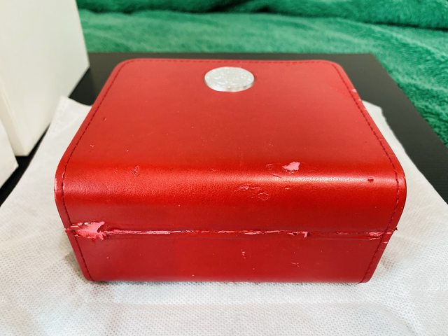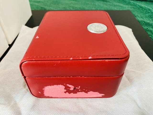 紅色錶盒表面因環保材質,有少部份脫落,現況如照片。