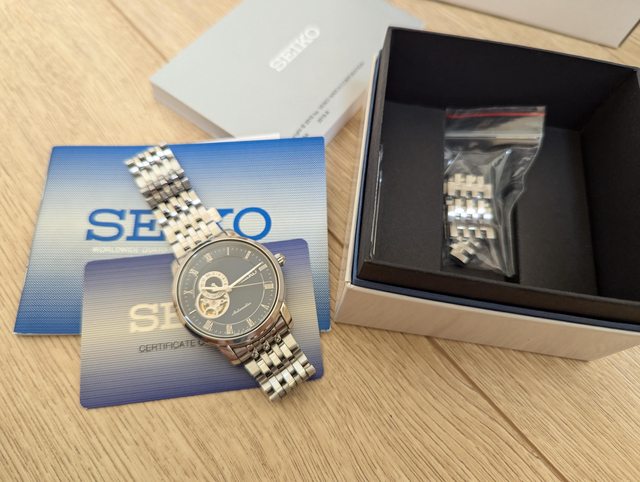 品牌名稱:Seiko Presage 手錶型號:4R39-00M0B 保卡年份:2015 欲售金額:5000 物品所在:台中可面交,其餘地區店到店 物品說明:正常使用,沒有重大傷痕 羅馬數字時標,典雅大方 39mm,藍面,開芯+背透 盒單齊全、說明書、多餘錶節 聯繫方式:站內信 物品照片: http://i.imgur.com/AgwQB2n.jpg