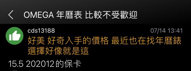 → simonioio: 臉書社團可以po看看,這裡專門交流Omega的 07/31 02:15