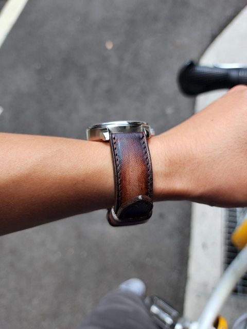 換上了焦糖色刷色牛皮錶帶