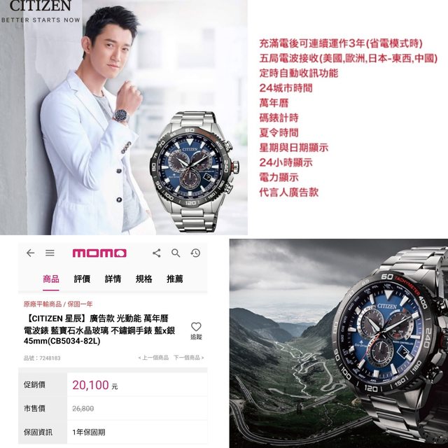 momo就算是平行輸入也還是要20,000,廣告款在錶店最多最多也就7.5折,目前配戴18.5