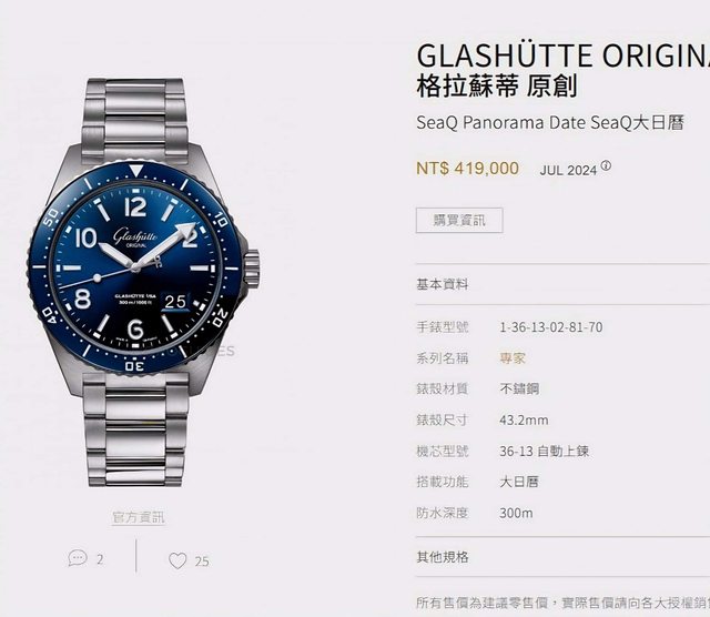 【售】:Glashutte Original 格拉蘇蒂 GO 大型 新款潛水錶系列 放射藍錶盤+弧形泡泡