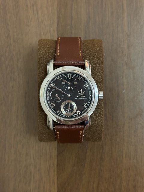 諾貝爾是瑞士非常知名的老牌,有自製機芯的能力。後來被華人集團收購,改採通用機芯