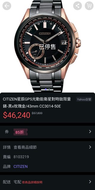 標題[賣錶] Citizen GPS對時鈦合金限量錶(鍍DLC)