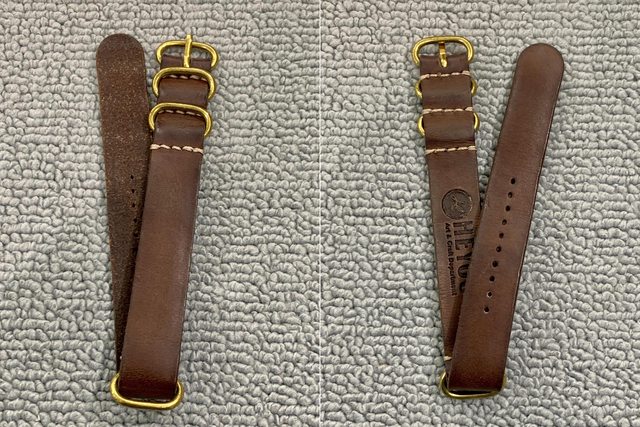 3. 二手20mm手工Nato銅環牛皮錶帶 700元