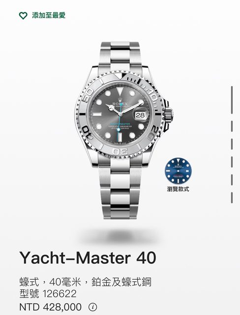 手錶型號:126622 灰遊艇 40mm 藍針