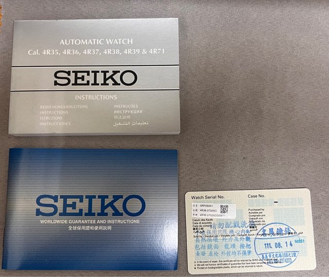 商品名稱:Seiko SRPD65 交易縣市:嘉義市 數量:1隻 預售價格:3000(降) 新舊狀況:2022/08/14,無碰撞 交易方式:面交或寄送 聯絡方式:站內信 其他說明 : 保固內,錶徑42.5mm,厚度13.4mm,防水100m ,盒裝、錶節完整 商品描述:整體約8成新,無碰撞,配戴後皆正常保養,計時圈黏一藍綠色夜明珠,贈送 數個計時圈供玩家改造 官網參考: