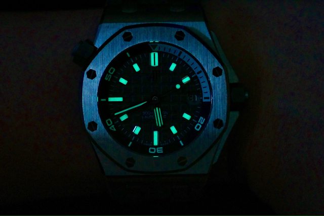 除了300m防水、潛水計時錶圈,潛水錶另一個不可或缺的要素就是超強夜光