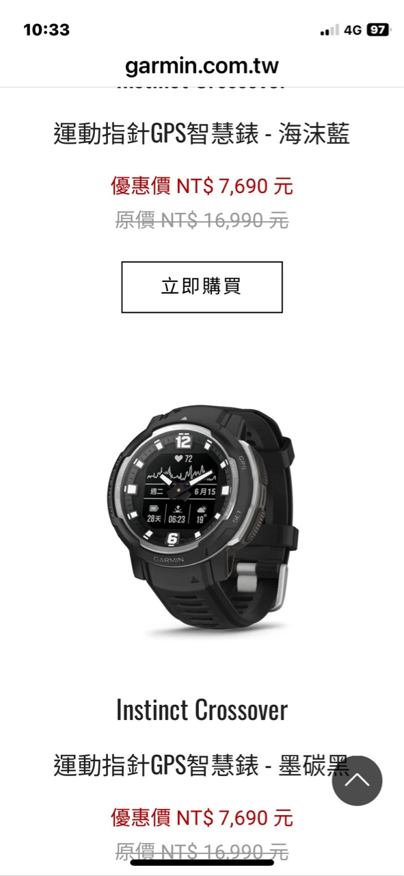 手錶型號:Instinct Crossover墨炭黑