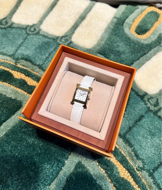 這是金錶殼、錶盤11顆鑽款,配上白色鱷魚錶帶的白雪公主一枚!