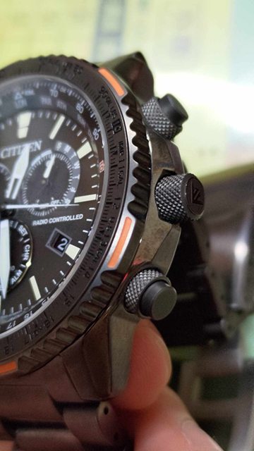 Citizen Promaster 飛行系列的顏值擔當,鐵槍灰的外圈飛行尺配上橘紅色的開孔就像戰