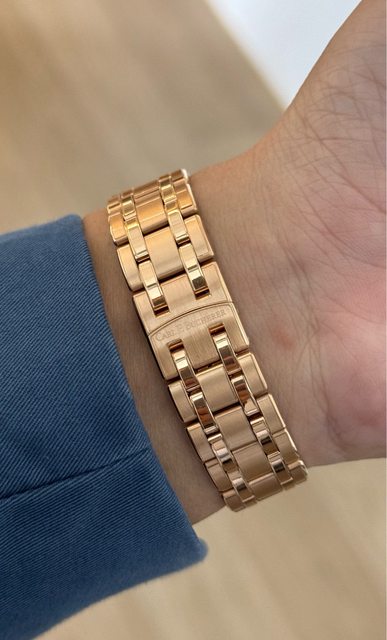 而藏錶重視稀有性,若是一般玫瑰金皮錶帶倒是好找,有金鏈帶的全金錶在各品牌都是刻