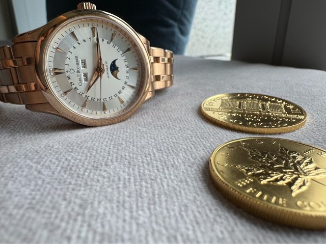 今天開箱的主角,就是最近以買金飾的心態考量來入手的全金月相錶XD