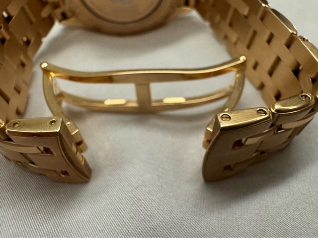 這鏈帶設計不俗,作工也細,錶節是螺絲鎖的就知道屬於上乘之物,這18K金鏈帶是我買
