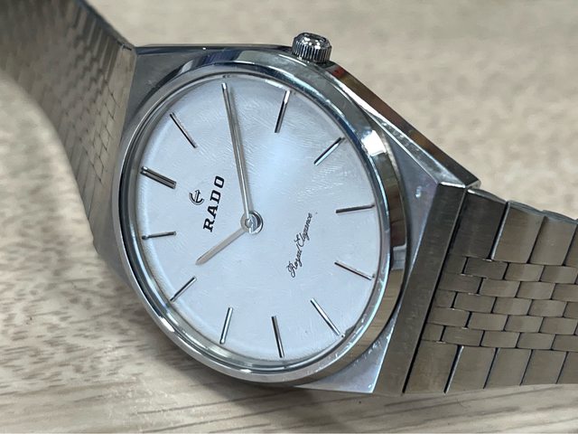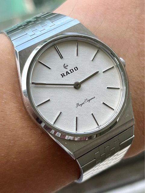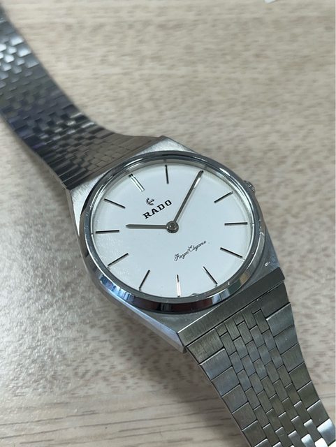 Rado royal elegance ETA 2821機芯 原裝錶帶與錶殼線條超一敗 白色面盤還有著特殊花紋 原裝龍頭 原裝錶帶 機芯打磨有夠美 這外型乍看之下根本是雷達板的PRX系列 錶徑含龍頭34mm 售4900