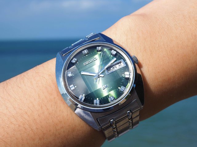 綠色的錶盤結合美麗的多切面玻璃,歲月沒有在這隻錶上留下太多痕跡,僅錶背有被雷射