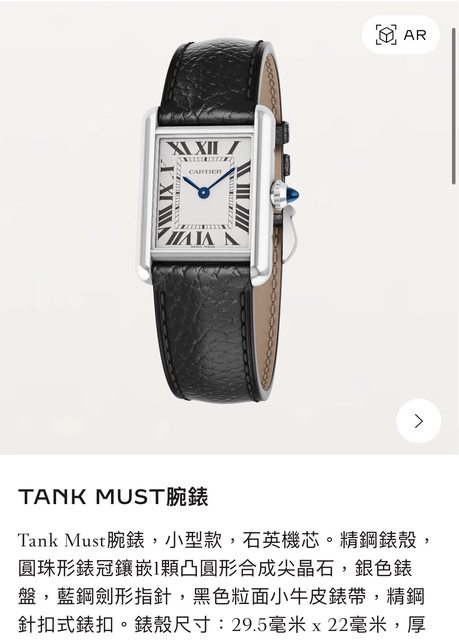 想買一支 Tank Must腕錶,小型款,石英機芯,黑色牛皮錶帶。