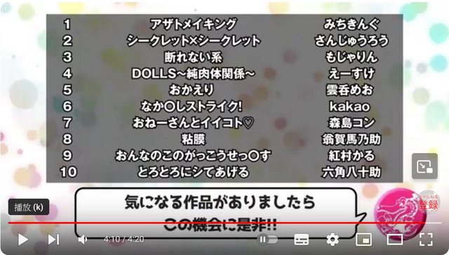 PS:配合這次榜單,前兩年進榜的作品有做5折促銷(FANZA/DLsite)