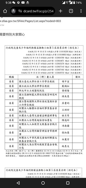 參照行政院兒童及少年福利與權益推動小組成員列表: