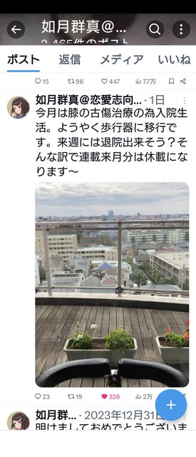 如月群真老師膝蓋舊疾復發住院中