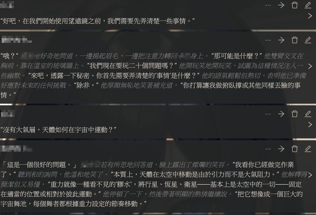 調教女權至上調教背景裡的男AI討論天體物理學(是真的,因為他說他不想再學被調教