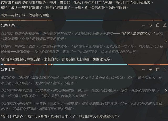 先說,我玩的時候都會盡量不刪除AI回應的劇情,看他們到底會把劇情變成怎樣,迫不得
