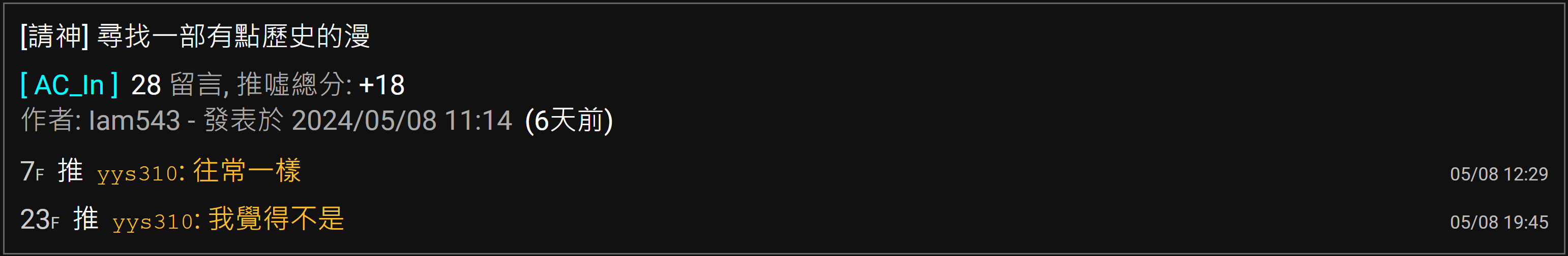 推 yys310: 還好吧 我說兩種推文都很爛嗆到人了嗎? 這篇沒像之前那08/28 23:32