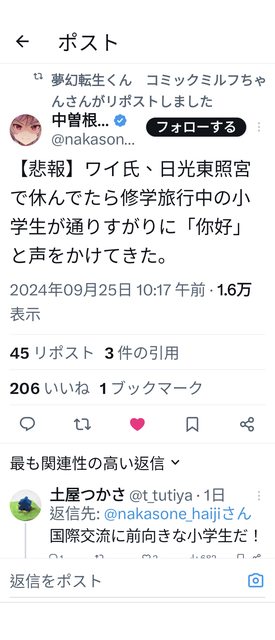 中曾根ハイジ老師:我在日光東照宮休息時,有畢業旅行的小學生經過