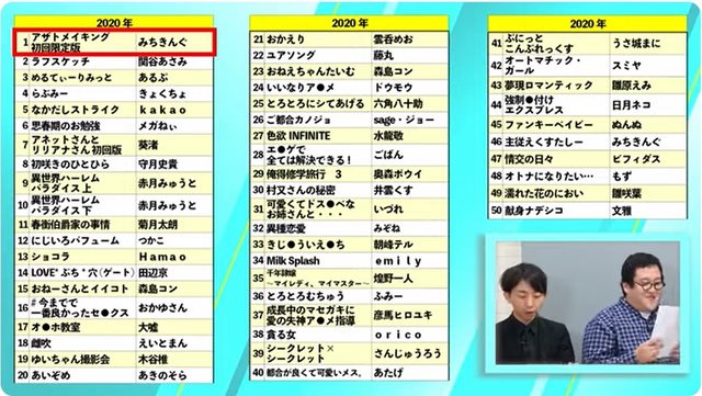 標題[洽特] melonbooks18~23年逐年成人漫畫銷量TOP50